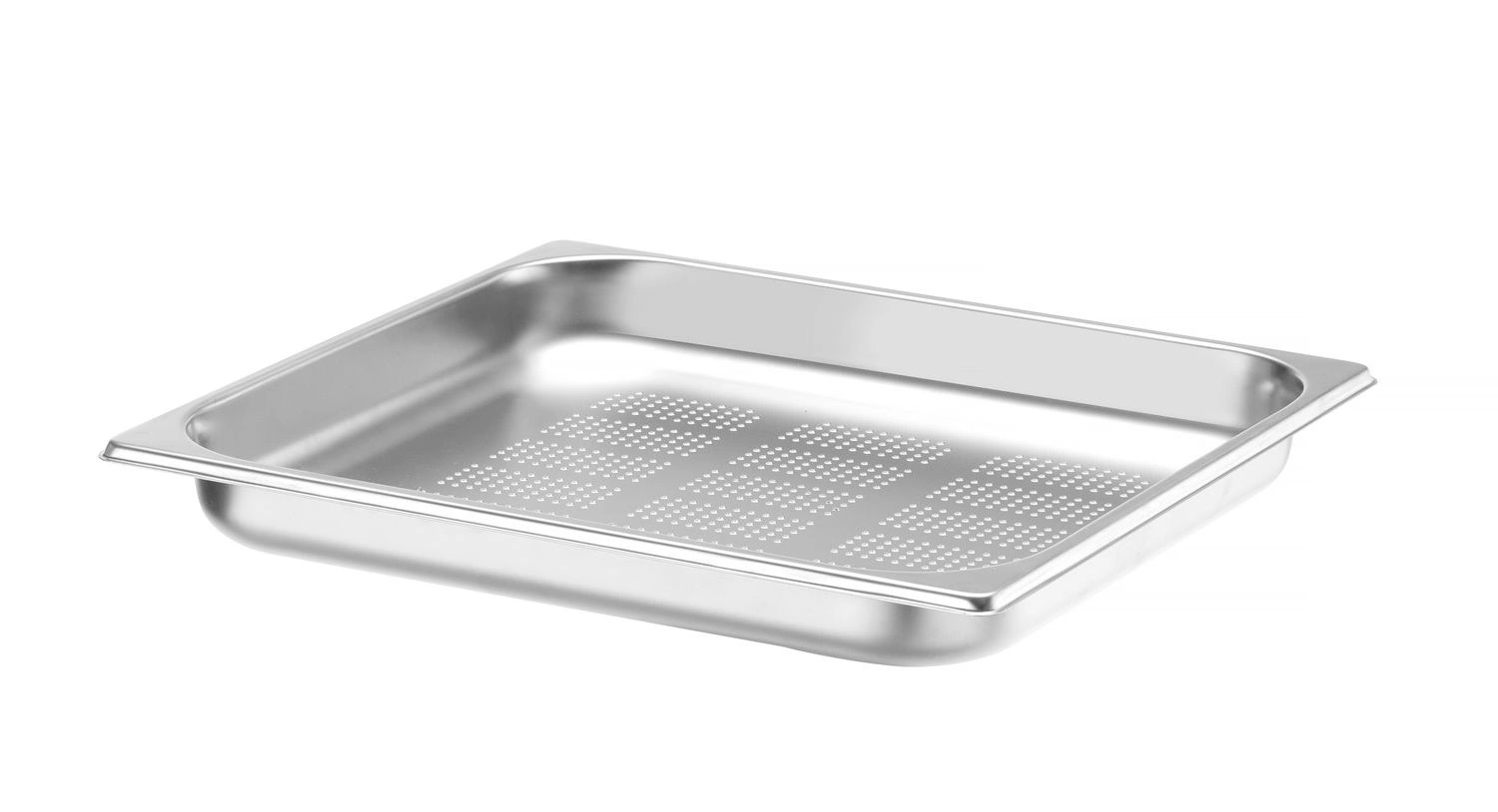 Pojemnik gastronomiczny GN 2/3 ze stali nierdzewnej Profi Line PERFOROWANY. Pojemnik polecany do wszystkich zastosowań w temperaturach od -40 do 300ºC. Wysoka jakoś stali nierdzewnej 18/10. Solidna konstrukcja.