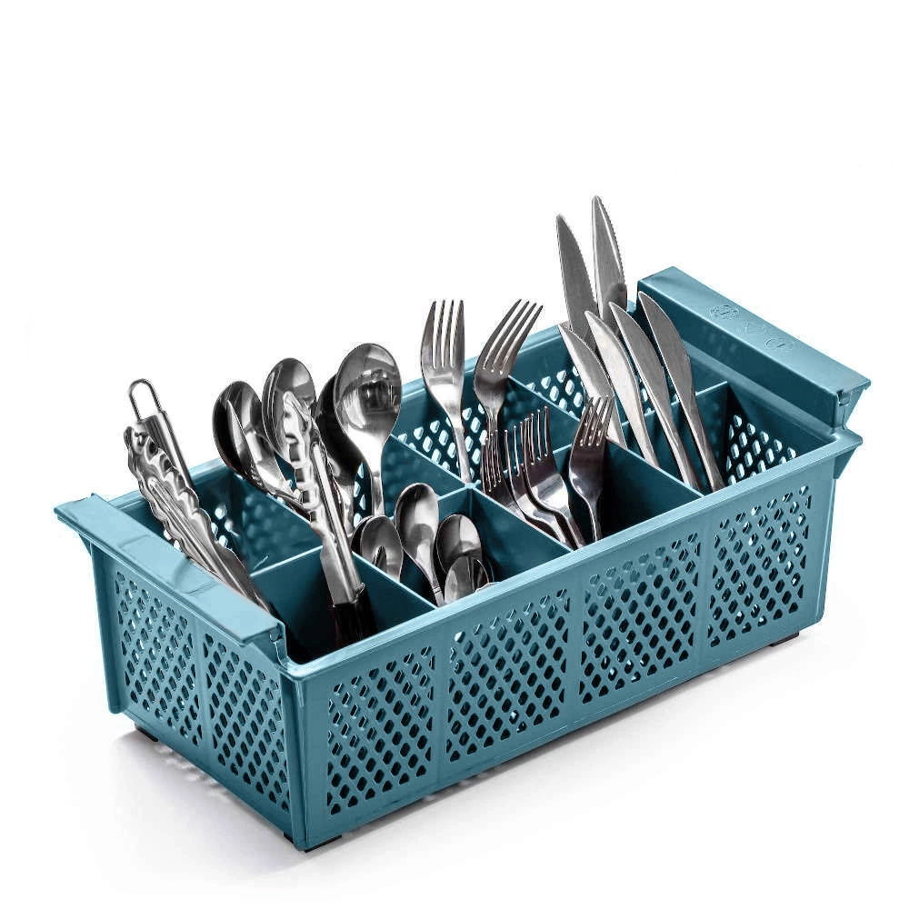 Pojemnik doskonale odnajdzie się w każdym środowisku gastronomicznym, od restauracyjnych zmywalni, przez stołówki szkolne, aż po kuchnie hotelowe. Osiem komór pozwala na błyskawiczne rozdzielanie i transport czystych sztućców, co minimalizuje ryzyko pomyłek i podnosi standardy higieny. Dzięki solidnej konstrukcji i odporności na uszkodzenia mechaniczne, produkt wytrzymuje nawet najbardziej wymagające warunki codziennej pracy.