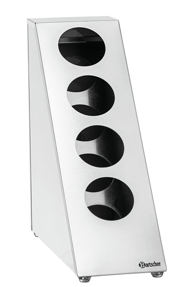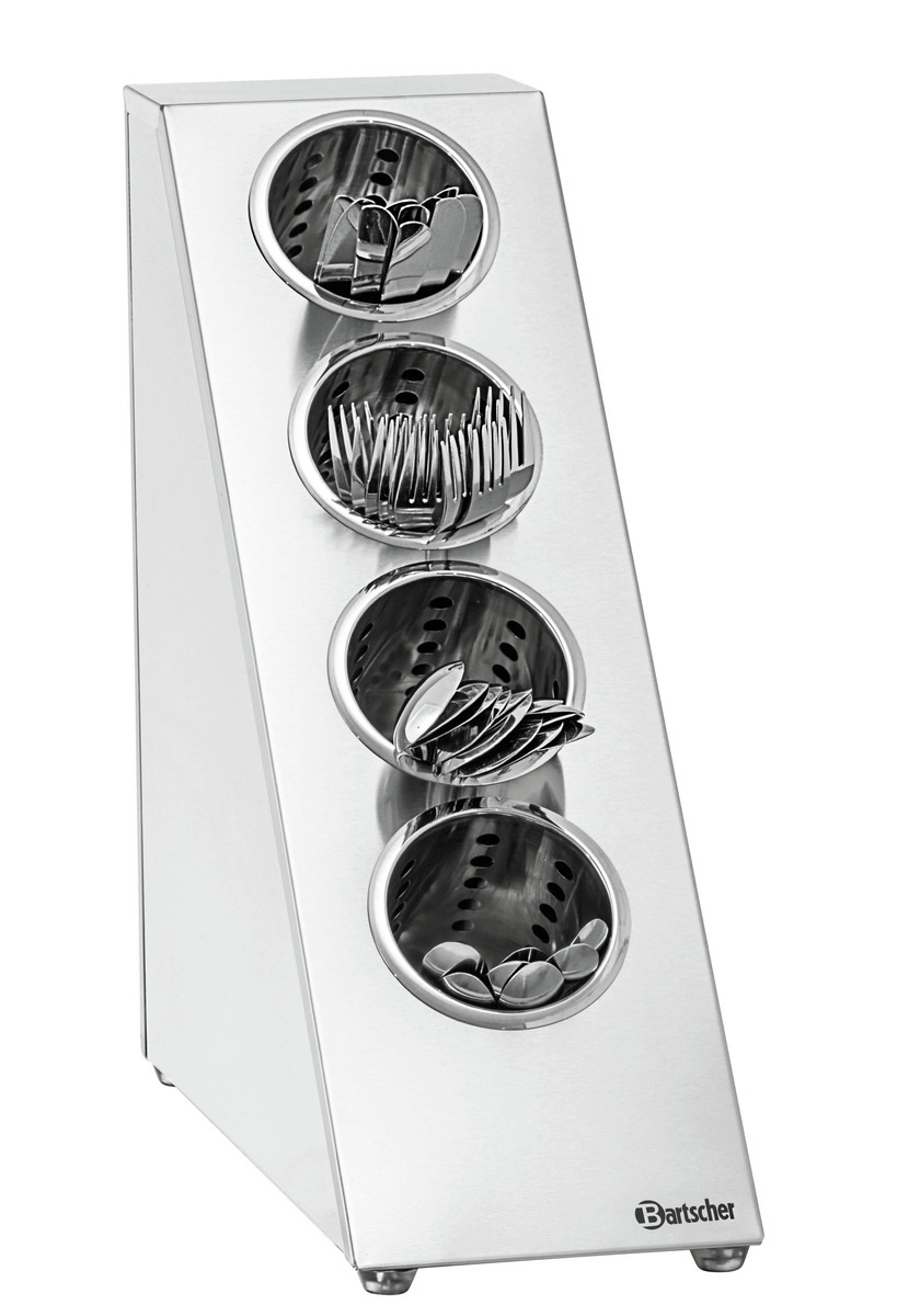 Stalowy pojemnik na sztućce BK40H marki Bartscher to praktyczne rozwiązanie dedykowane bufetom, stołówkom oraz strefom samoobsługowym. Umożliwia łatwe i higieniczne przechowywanie sztućców, zapewniając wygodę obsługi.