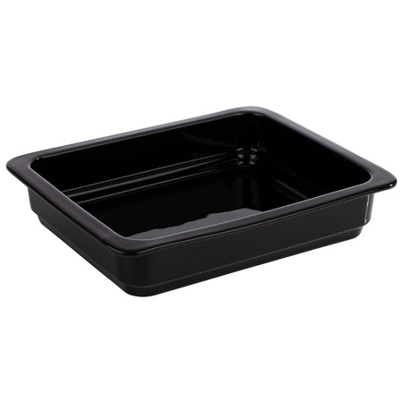 Porcelanowy pojemnik GN 1/2 APS to doskonałe rozwiązanie do serwowania potraw w elegancki i praktyczny sposób. Wysoka jakość wykonania, odporność na temperaturę i możliwość mycia w zmywarce gwarantują wygodę użytkowania, a elegancki czarny kolor doda charakteru każdemu bufetowi.