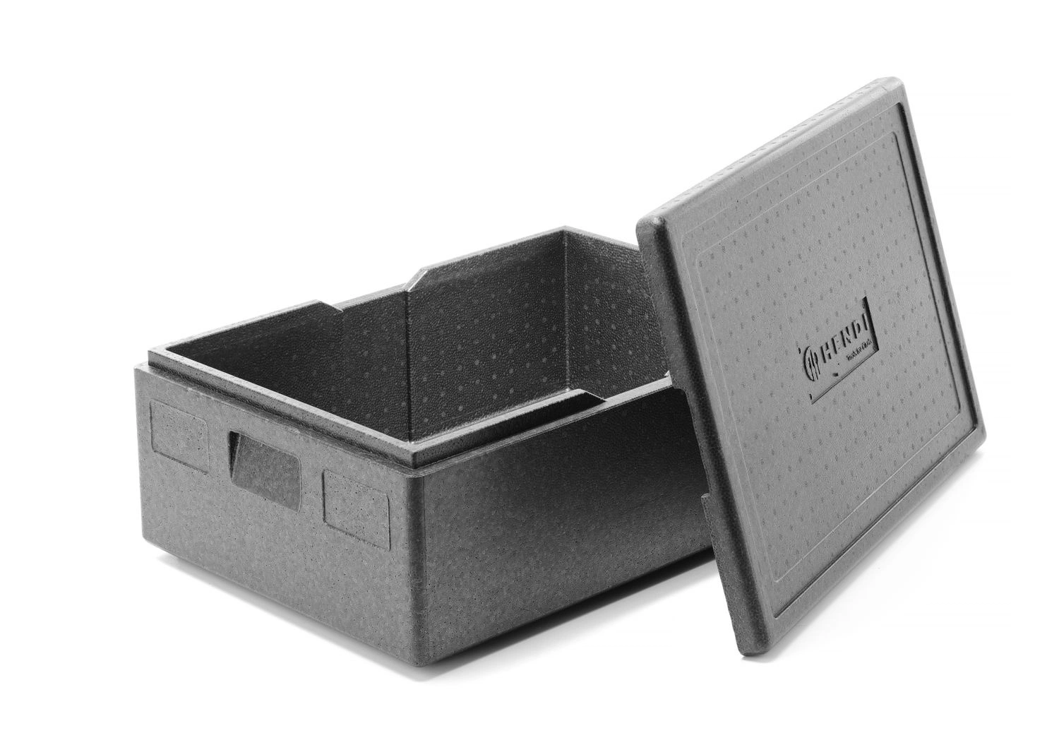 Produkt został wykonany z wytrzymałego czarnego piocelanu LSP EB, co zapewnia mu lekkość, a jednocześnie odporność na uszkodzenia mechaniczne. Ergonomiczne uchwyty ułatwiają codzienną obsługę i przenoszenie nawet przy pełnym załadunku. Budowa pojemnika umożliwia wygodne umieszczanie w nim standardowych pojemników GN 60x40 cm, co jest dużym ułatwieniem przy pakowaniu i transporcie większych ilości jedzenia.