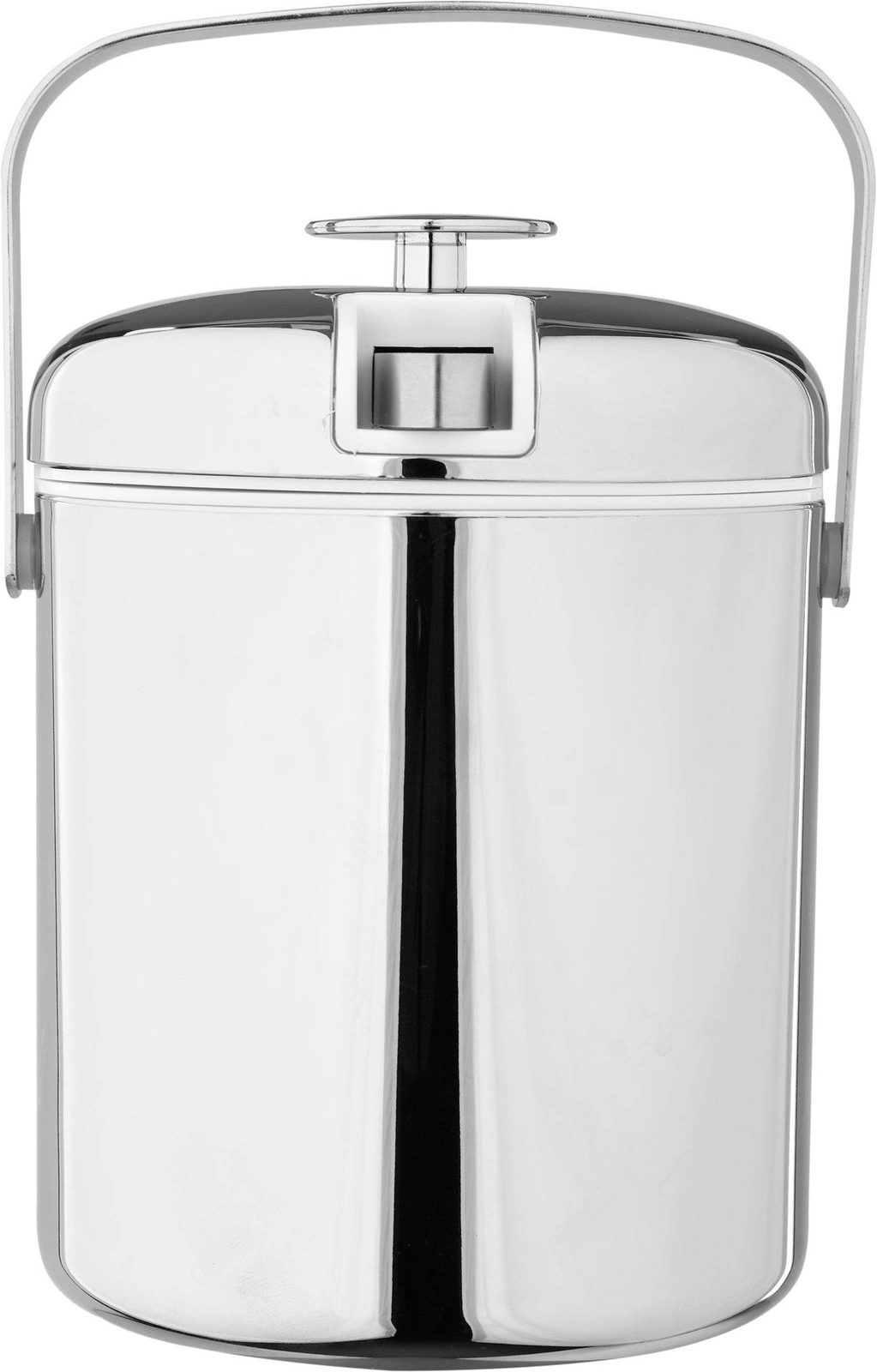 Termoizolacyjny pojemnik do lodu chromowany z pokrywką i szczypcami. Świetnie nadaje się na do użytku profesjonalnego (bale, bankiety, wesela, bary i puby), a także do użytku domowego np. na letnie imprezy. Pojemnik długo utrzymuje temperaturę, dzięki podwójnym ścianką. W komplecie z pojemnikiem sprzedawany ociekacz oraz szczypce do lodu.