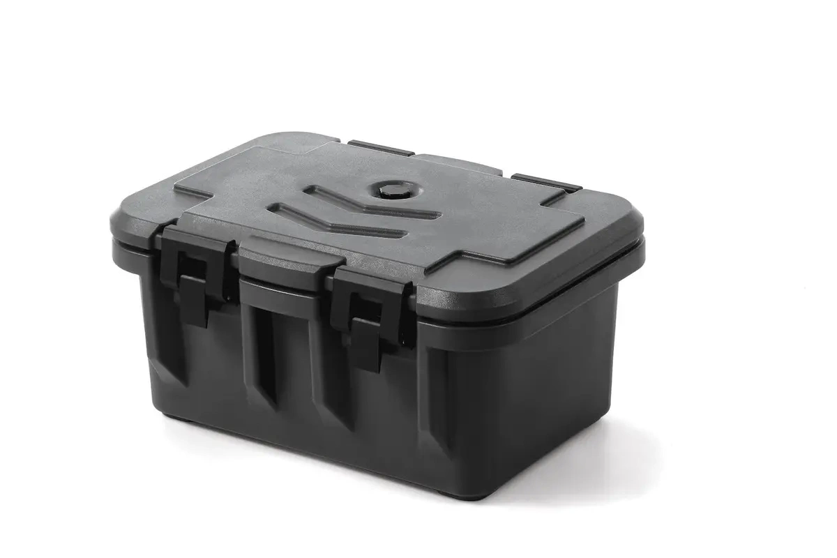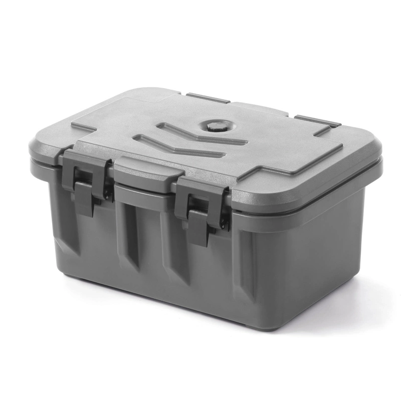 Pojemnik termoizolacyjny GN 1/1 HENDI 877852 doskonale sprawdzi się w restauracjach, firmach cateringowych, stołówkach oraz podczas wydarzeń plenerowych. Dzięki zastosowaniu podwójnych ścianek wypełnionych pianką poliuretanową pojemnik utrzymuje odpowiednią temperaturę potraw przez długi czas, co pozwala na bezpieczny i komfortowy transport żywności. Przemyślana konstrukcja klamer zapewnia łatwe i szybkie zamykanie oraz otwieranie, a szczelna pokrywa chroni zawartość przed wychłodzeniem, przegrzaniem czy przypadkowym otwarciem w trakcie przenoszenia.