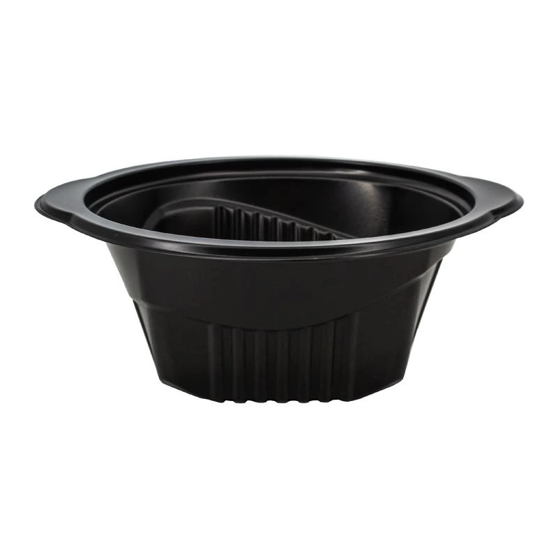 Pojemnik na zupę o pojemności 350 ml cm do serwowania zup na wynos. Pojemnik wykonany z czarnego polipropylenu nadającego się do recyklingu. Przeznaczony do zgrzewu dań na wynos w zgrzewarkach.