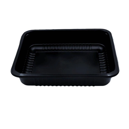 Pojemnik obiadowy niedzielony o wymiarach 22,7x17,8x5 cm do dań na wynos. Pojemnik wykonany z czarnego polipropylenu nadającego się do recyklingu. Przeznaczony do zgrzewu dań na wynos w zgrzewarkach.