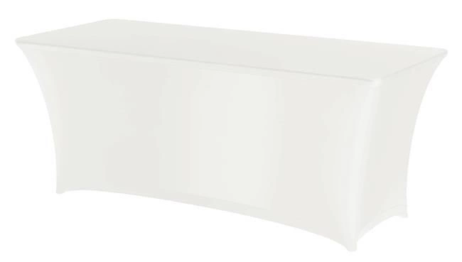 Pokrowiec na stół prostokątny SYMPOSIUM biały marki Hendi. Kolorbiały. Pokrowiec wykonany z jerseyu 160 g/m2 (90% poliester, 10% elastan). Obrus nie wymaga prasowania. Kolory są trwałe.