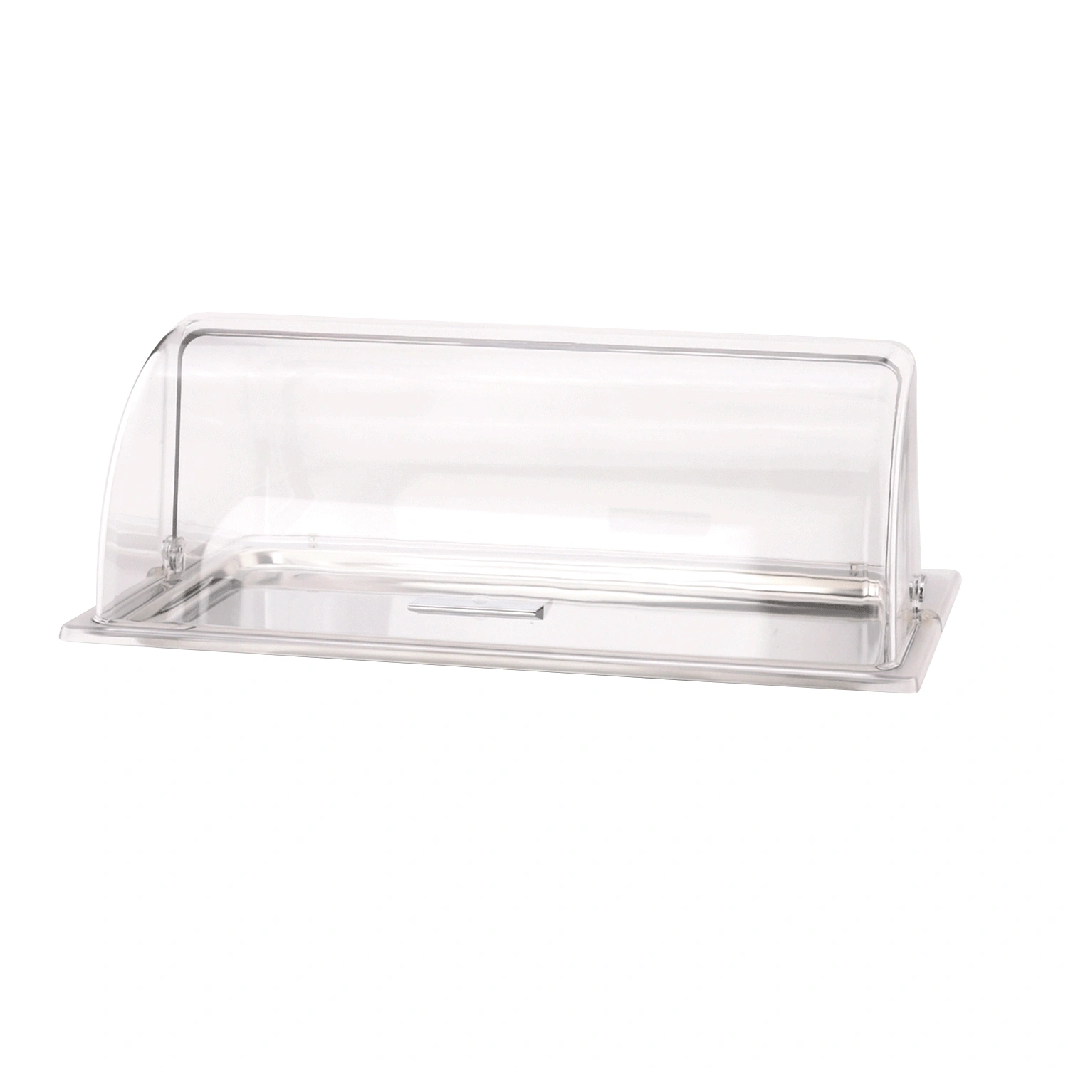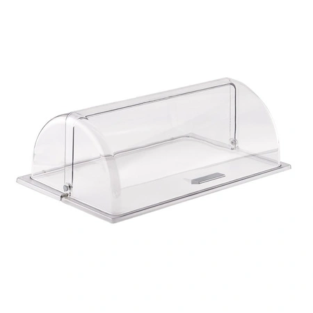 Pokrywa GN 1/1 Roll-top APS 11018 została zaprojektowana z myślą o intensywnym użytkowaniu w gastronomii. Roll-top pozwala na łatwe korzystanie z pojemnika nawet w trakcie trwania serwisu – przykrywka przesuwa się płynnie i nie wymaga całkowitego zdejmowania. Przeźroczyste tworzywo jest odporne na zarysowania, a elementy z odlewu cynkowego zwiększają wytrzymałość całej konstrukcji. Pokrywa sprawdzi się zarówno podczas ekspozycji potraw na bufecie, jak i w trakcie przechowywania gotowych dań.