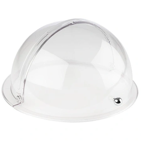 Pokrywa została wykonana z solidnego i odpornego na uszkodzenia tworzywa SAN, które cechuje się wysoką przejrzystością i trwałością. Chromowany uchwyt z aluminium gwarantuje wygodę użytkowania oraz elegancki wygląd. Kształt i wymiary pokrywy umożliwiają jej dopasowanie do standardowych tac, a mechanizm otwierania pozwala na efektywne korzystanie nawet w warunkach wzmożonego ruchu gastronomicznego.
