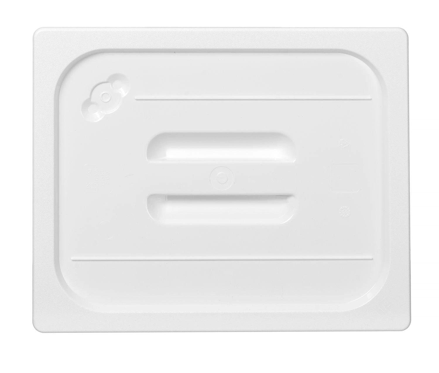 Pokrywka z białego poliwęglanu do GN 1/2. Nie wchłania zapachów i smaków.