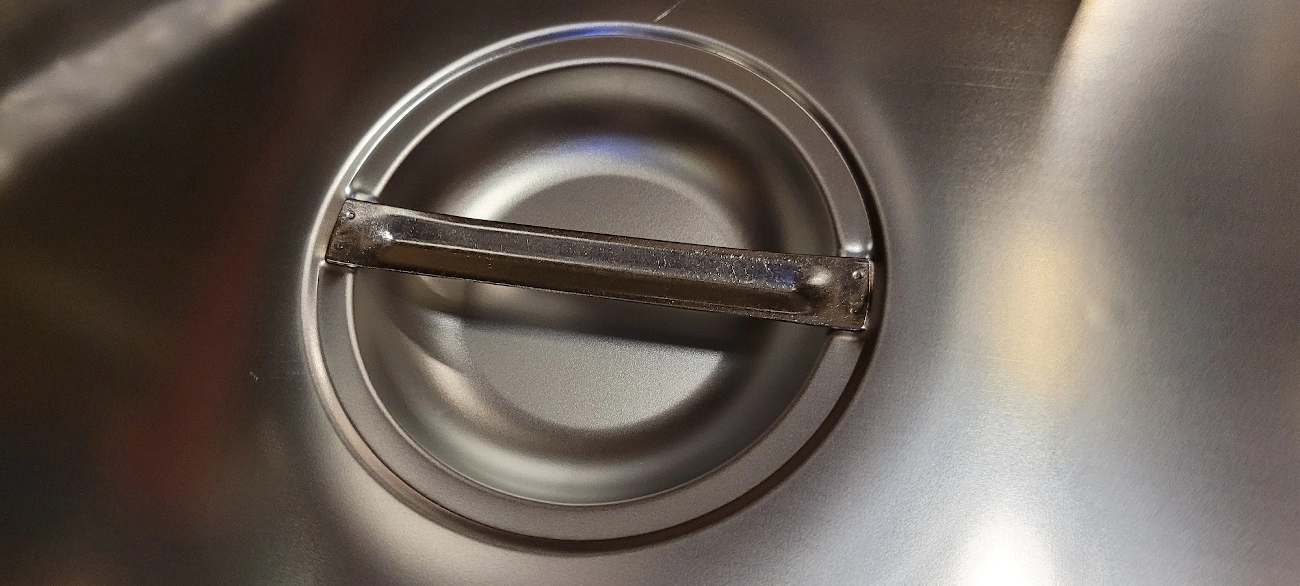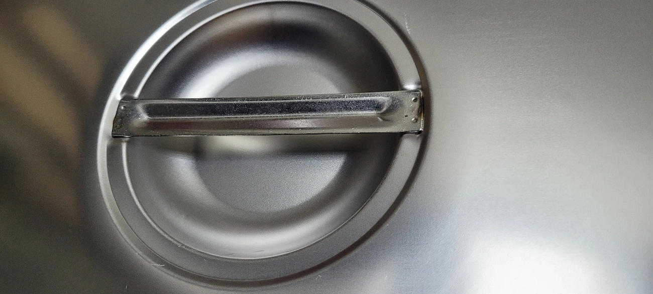 Uwaga! Pokrywka posiada wadę mocowania uchwytu. Uchwyt został wykonany z nieoszlifowanej blachy stalowej słabo połączonej nitem z pokrywką, co skutkuje możliwością urwania uchwytu. Niniejsza wada jest traktowana jako wada fabryczna, która nie może być podstawą do reklamacji lub zwrotu towaru.