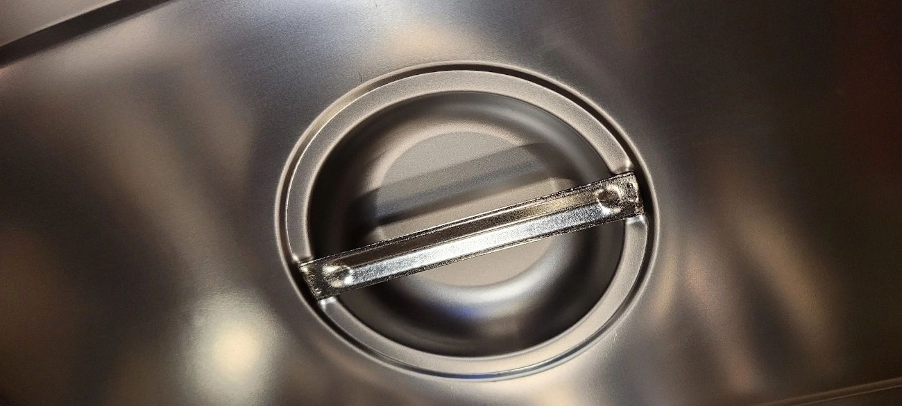 Uwaga! Pokrywka posiada wadę mocowania uchwytu. Uchwyt został wykonany z nieoszlifowanej blachy stalowej słabo połączonej nitem z pokrywką, co skutkuje możliwością urwania uchwytu. Niniejsza wada jest traktowana jako wada fabryczna, która nie może być podstawą do reklamacji lub zwrotu towaru.