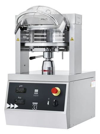 Prasa do pizzy marki Prismafood, przeznaczona do wałkowania ciasta na pizzę o maksymalnej średnicy 45 cm. Urządzenie posiada niezależne ustawienia temperatury roboczej tarczy górnej i dolnej. Maksymalna gramatura ciasta przed rozwałkowaniem powinna wynosić 600-650 gram. Płyty wałkujące wykonane ze stali chromowanej. Maksymalny rozstaw płyt wynosi 110-115 mm. Regulacja grubości placka ustawiana za pomocą dźwigni. Ruchoma osłona z przodu urządzenia zapewnia bezpieczeństwo podczas pracy z urządzeniem. Urządzenie posiada też regulację czasu prasowania ciasta. Maksymalna temperatura podgrzania talerzy wynosi 170°C.