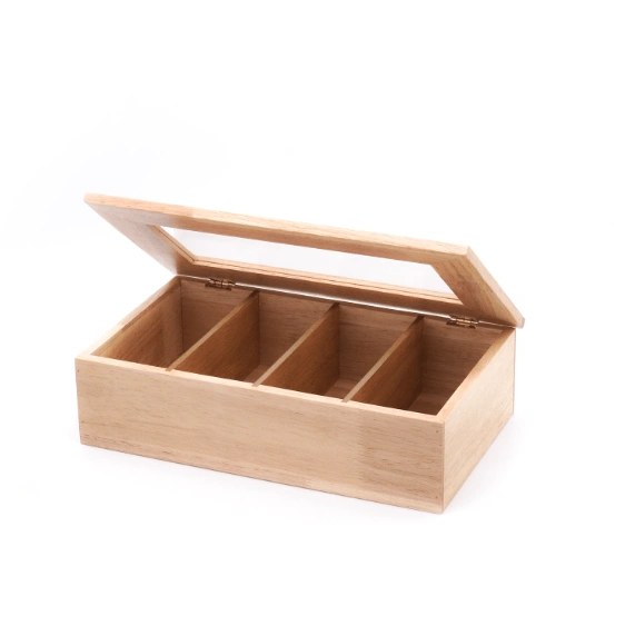Eleganckie pudełko na herbatę wykonane z jasnobrązowego drewna to praktyczny dodatek, który sprawdzi się zarówno w domu, jak i w biurze czy kawiarni. Przeźroczyste okienko z akrylu pozwala na wygodne sprawdzenie zawartości bez otwierania wieczka, a cztery pojemne przegródki umożliwiają estetyczne przechowywanie różnych rodzajów herbaty. Produkt ten łączy w sobie funkcjonalność z estetycznym wyglądem, dlatego świetnie nadaje się do ekspozycji na blacie czy półce.