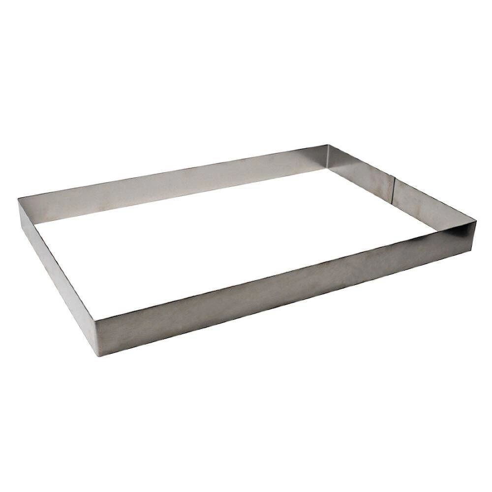 Kwadratowy rant do ciasta wykonany ze stali nierdzewnej.