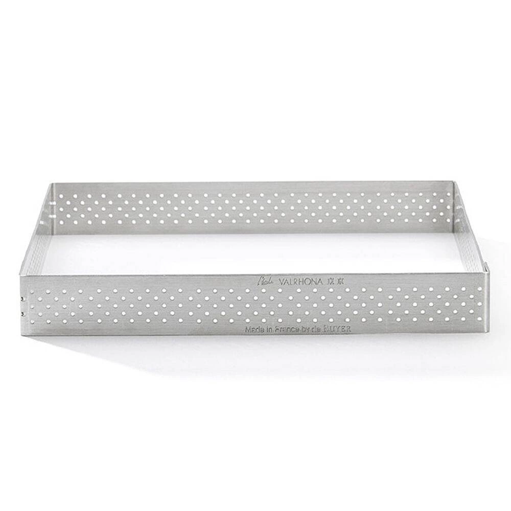 Perforowana forma do ciasta - kwadratowa. Wykonana ze stali nierdzewnej. Drobna perforacja daje efekt jednolitego pieczenia. Idealnie gładka powierzchnia pozwala na łatwe wyjęcie ciasta z rantu. Grubość 0,8 mm.
