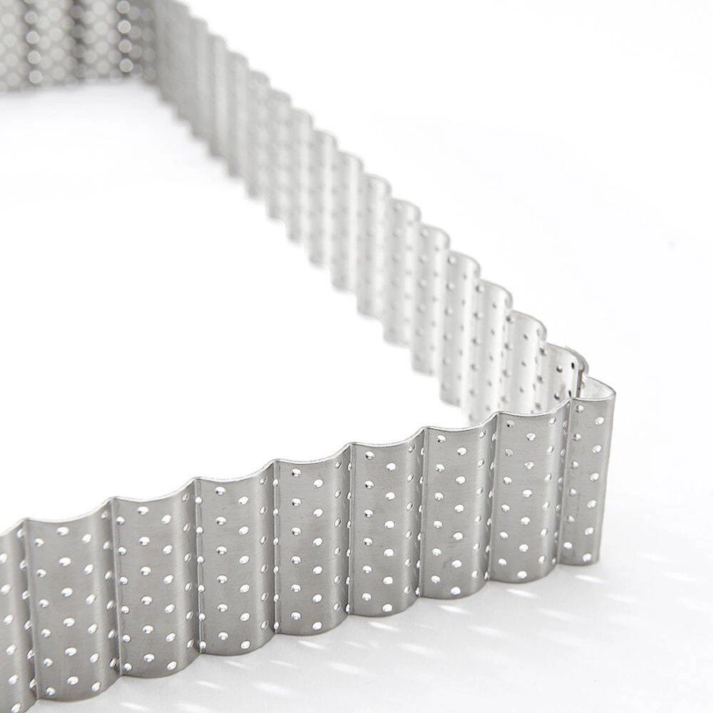 Rant piekarniczo-cukierniczy kwadratowy perforowany marki DE BUYER o wymiarach 23x23x3 cm. Wykonany ze stali nierdzewnej 18/10. Idealny do kształtowania ciast i potraw. Wytrzymały i elastyczny, dzięki czemu wyciągnięcie produktu jest bezproblemowe. Rant idealnie sprawdzi się przy robieniu ciast na bazie ciasta francuskiego czy kruchego. Dziurki w ściankach rantu gwarantują równomierne dopiekanie przy krawędziach. Nadaję się do pracy w zamrażarkach, chłodziarkach, lodówkach czy piekarnikach. Można myć w zmywarce.