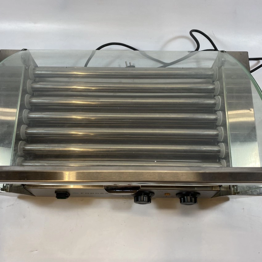 Rolkowy opiekacz parówek z osłoną szklaną - 7 rolek | FORGAST FG09600/U1