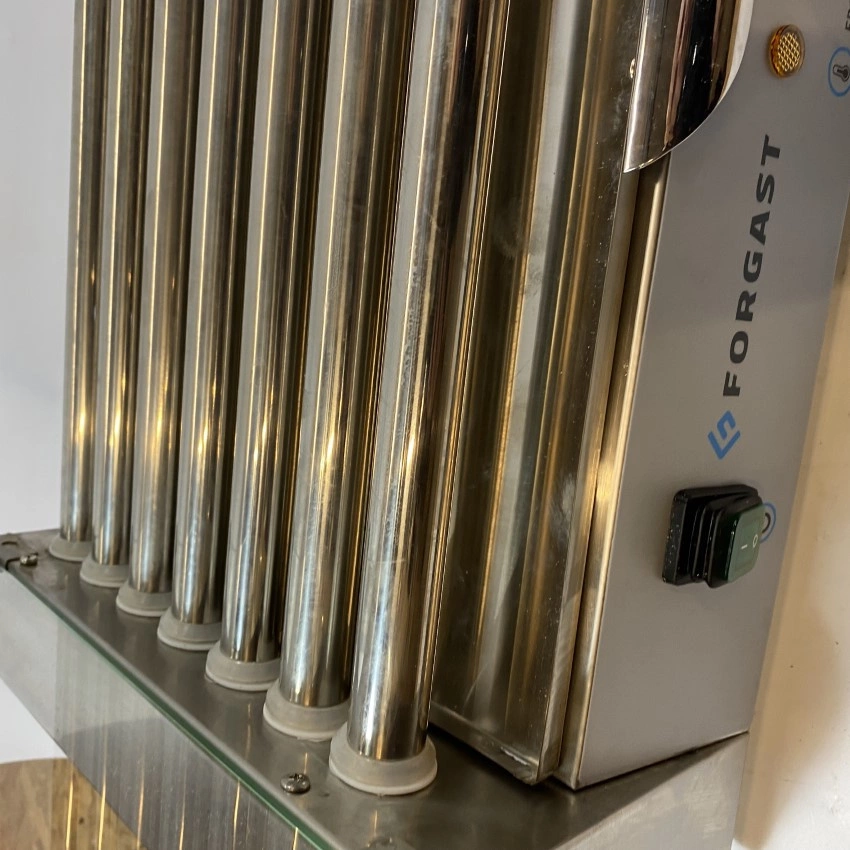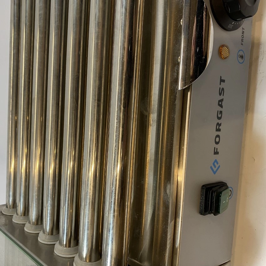 Rolkowy opiekacz do parówek marki Forgast. Wytrzymała konstrukcja ze stali nierdzewnej. 7 obrotowych rolek ze stali nierdzewnej. W grillu znajdują się dwa termostaty odpowiadające za pracę przednich i tylnych rolek.