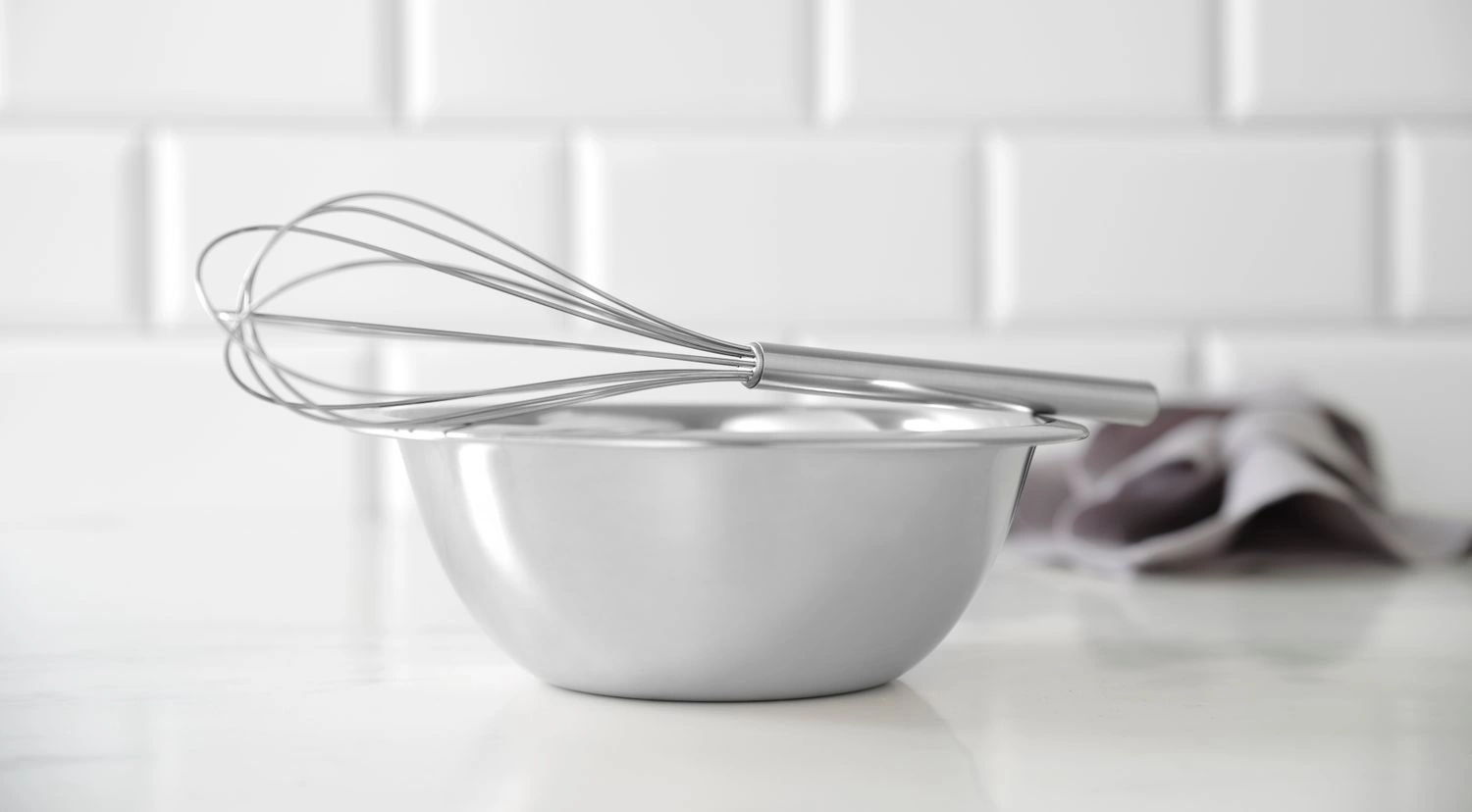 Rózga do mieszania o długości 280 mm i twardych drutach wykonana ze stali nierdzewnej.