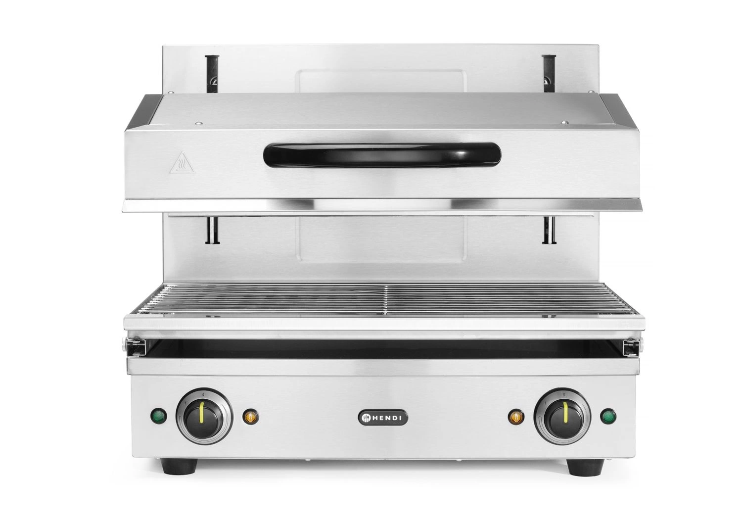 Salamader elektryczny o mocy 3,6 w obudowie z wysokiej jakości stali nierdzewnej 18/10. Idealny do grillowania oraz podgrzewania różnych potraw i zapiekanek. Urządzenie posiada płynną regulację górnej części umożliwiającą obróbkę potraw różnych rozmiarów. Salamander jest wyposażony w termostat z płynną regulacją temperatury oraz w lampkę kontrolną. Dwie niezależne strefy grzewcze. Urządzenie daje możliwość różnorodnego dopasowania wysokości za pomocą niezawodnego systemu do podnoszenia. Salamander wyposażony jest w wysuwany pojemnik na tłuszcz.