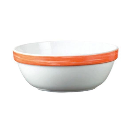 Salaterka BRUSH pomarańczowa wykonana z hartowanego szkła. Zastawa stołowa z serii BRUSH jest bardzo wytrzymała na wstrząsy, zarysowania, uszczerbienia i mycie w zmywarkach gastronomicznych, a jej dodatkowym atutem jest uniwersalny kształt.
