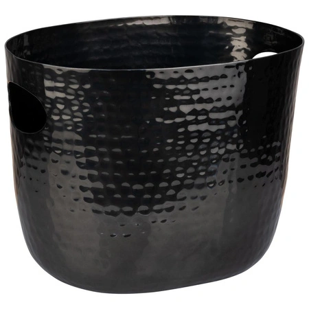 Schładzacz do butelek z uchwytami w kolorze czarnym to praktyczny i stylowy dodatek do każdego stołu, który doskonale sprawdzi się zarówno podczas domowych spotkań, jak i w restauracjach czy na eventach. Charakteryzuje się efektowną, młotkowaną powierzchnią imitującą spiż oraz solidnymi bocznymi uchwytami ułatwiającymi przenoszenie. Idealny do chłodzenia wina, szampana i innych napojów, zapewniając im odpowiednią temperaturę przez długi czas.