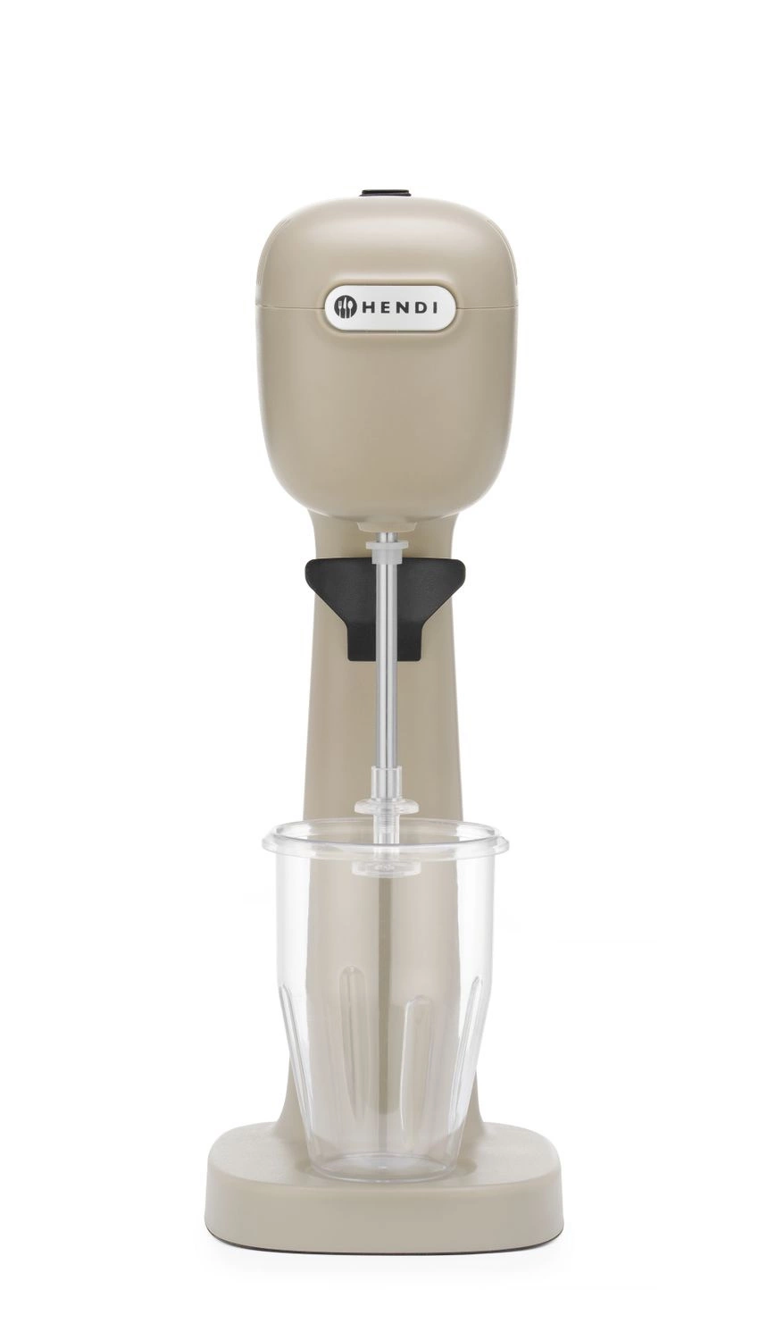 Shaker do koktajli mlecznych Hendi zaprojektowany przez holenderskiego projektanta Roberta Bronwassera. Urządzenie wyróżnia stylowa obudowa dostępna w 6 atrakcyjnych kolorach. Shaker idealnie nadaje się do przygotowywania freddo cappuccino, frappé i koktajli mlecznych. Obodowa wykonana z barwionego tworzywa ABS. We wnętrzu znajduje się mocny silnik z dwiema prędkościami pracy: 15000 i 19000 obr./min. Sterowanie odbywa się za pomocą dwubiegowego przełącznika zlokalizowanego na górze urządzenia. Spieniacz do mleka posiada wbudowany mikroprzełącznik, co zapobiega włączeniu się urządzenia w przypadku braku lub nieprawidłowego ustawienia kubka. Podstawa urządzenia została dodatkowo dociążona, aby zapewnić dodatkową stabilność i poprawić bezpieczeństwo pracy urządzenia. Gumowe nóżki urządzenia tłumią drgania i chronią powierzchnię blatu roboczego przed uszkodzeniem. Urządzenie dostarczane jest z kompletem akcesoriów, których część stanowią wymienne mieszadła. Akcesoria można myć w zmywarce.