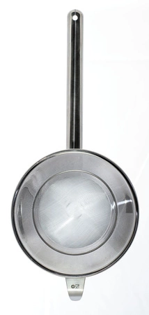 Sito chińskie stożkowe z siatką. Doskonale sprawdzi się w profesjonalnej gastronomii jak i w warunkach domowych. Wykonanie - stal nierdzewna. Druciany uchwyt. Perforowane.