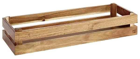Prezentowana skrzynka bufetowa GN SUPERBOX doskonale sprawdza się podczas serwowania śniadań, lunchów czy przekąsek w formie bufetowej. Dzięki odwracalnej konstrukcji można ją wykorzystywać na dwa sposoby, zależnie od potrzeb – jako pojemnik na pieczywo, owoce lub inne produkty, a także jako stabilną podstawę pod pojemniki GN. Wysokiej jakości drewno zabezpiecza zawartość, a jednocześnie podkreśla estetykę ekspozycji. Skrzynka nie posiada dodatkowych akcesoriów, co czyni ją łatwą w przechowywaniu i transporcie.