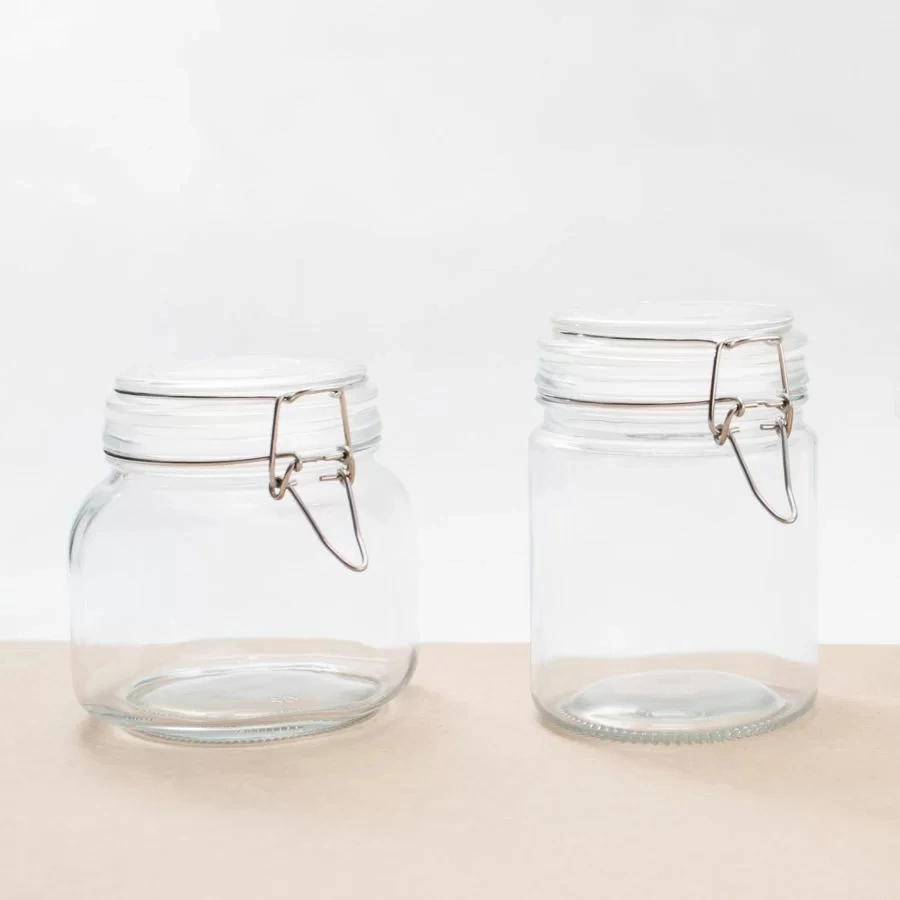 Słoik z klamrą, kwadrat, 1 L - komplet 4 szt. | TOMGAST T-1310