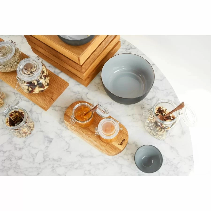 Słoik z klamrą marki TOM-GAST to nie tylko funkcjonalne naczynie, ale również stylowy dodatek, który idealnie sprawdzi się w każdej kuchni oraz na bufecie śniadaniowym. Wyposażony w silikonową uszczelkę i solidną stalową klamrę, zapewnia hermetyczne zamknięcie, które chroni zawartość przed zanieczyszczeniami, wilgocią i utratą świeżości. Doskonale nadaje się do serwowania konfitur, dżemów, miodów oraz różnych suchych produktów, takich jak płatki śniadaniowe, cukierki czy ciastka. Jest to świetne rozwiązanie dla bufetów, gdzie goście mogą samodzielnie komponować swoje śniadanie.