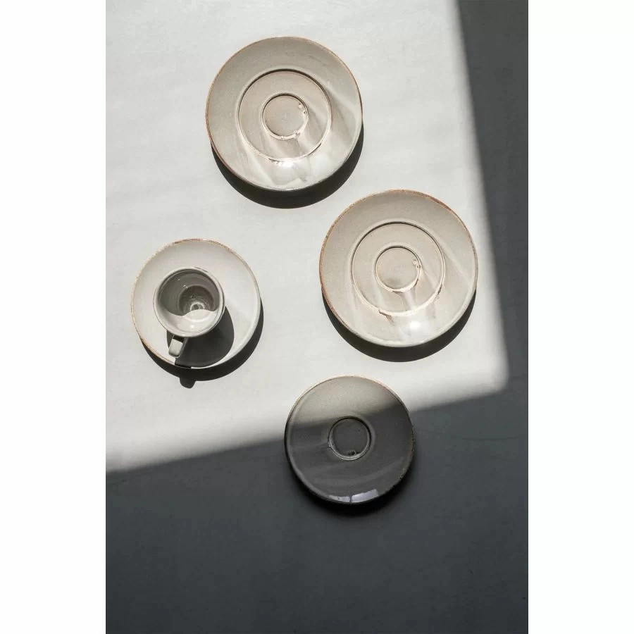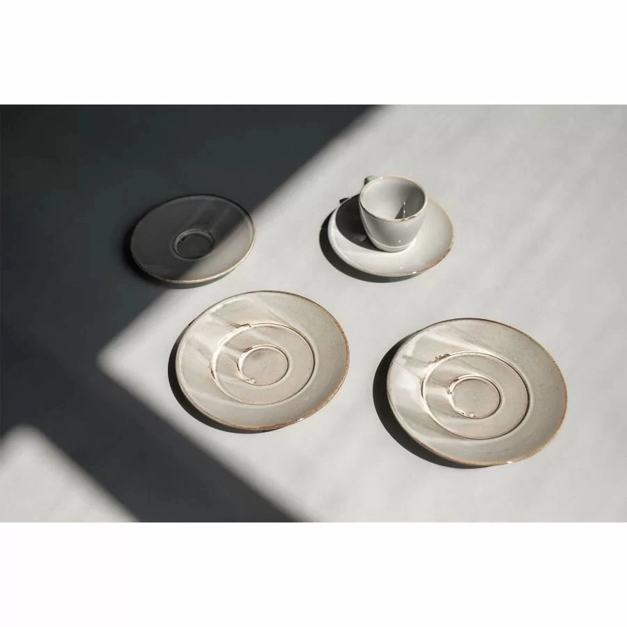 Spodek do filiżanki do kawy marki VERLO to elegancki element zastawy stołowej, który idealnie łączy funkcjonalność z nowoczesnym designem. Jego minimalistyczna forma w ciepłym odcieniu szarości, oraz wykończenie w wysokim połysku sprawiają, że doskonale wpisuje się w każdą aranżację stołową, zarówno w nowoczesnych, jak i klasycznych wnętrzach. Ręcznie wykończona porcelana z glazurą reaktywną nadaje każdemu spodkowi unikalny charakter, przypominający rękodzieło, co podkreśla jego wyjątkowość.