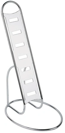 Konstrukcja stojaka opiera się na wytrzymałej ramie z chromowanego metalu, która zapewnia nie tylko stabilność, ale również estetyczny wygląd. Drabinkowa forma umożliwia umieszczenie na różnych poziomach misek, talerzy lub innych elementów zastawy, pozwalając na czytelny i efektowny układ potraw. Prosty design ułatwia również czyszczenie i przechowywanie stojaka po zakończeniu użytkowania.
