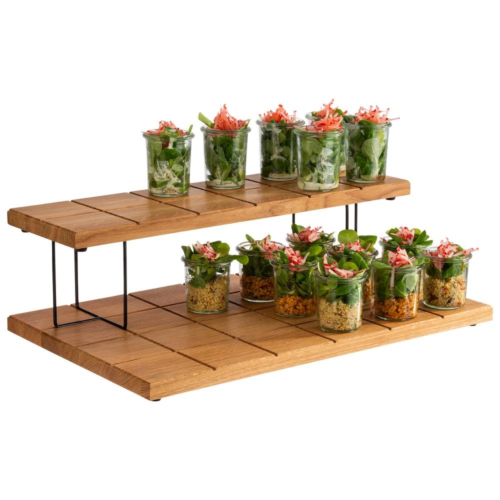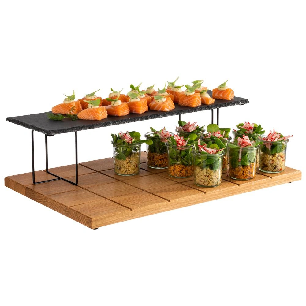 Stojak bufetowy SQUARE sprawdzi się podczas organizacji śniadań hotelowych, bankietów czy przyjęć, gdzie liczy się efektowna prezentacja potraw. Pozwala na piętrowe ustawienie naczyń i efektywne wykorzystanie przestrzeni na stole. Dzięki antypoślizgowej powłoce jest bezpieczny nawet przy intensywnym użytkowaniu.