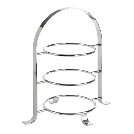 Konstrukcja stojaka opiera się na trzech poziomach, z miejscem na talerze o maksymalnej średnicy 17 cm. Każdy poziom posiada wewnętrzny pierścień o średnicy 10,5 cm, który stabilizuje naczynia i zapobiega ich przesuwaniu się. Stojak został wykonany z chromowanego metalu, co zapewnia mu wytrzymałość i odporność na uszkodzenia mechaniczne oraz wpływ wilgoci.