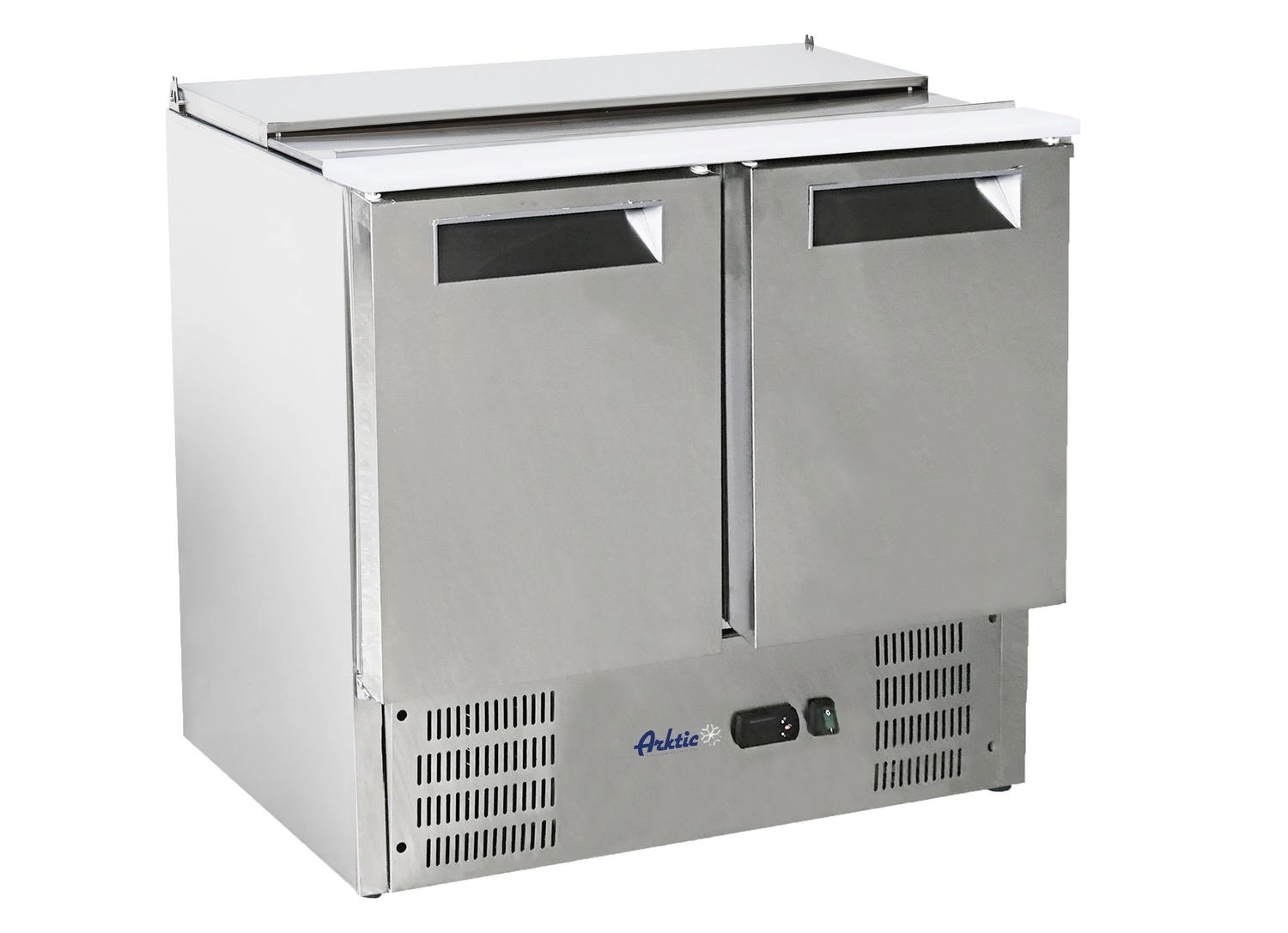 Stół chłodniczy sałatkowy 2-drzwiowy marki Arktic to profesjonalne urządzenie chłodnicze przeznaczone do przechowywania i przygotowywania produktów spożywczych, zwłaszcza sałatek i dodatków. Został wyposażony w praktyczną, uchylną pokrywę oraz specjalną powierzchnię roboczą do krojenia. Idealnie sprawdzi się w restauracjach, barach sałatkowych, pizzeriach czy punktach gastronomicznych, gdzie liczy się wydajność, higiena i wygoda pracy.