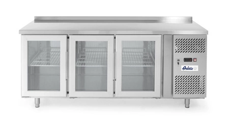 Stół chłodniczy 3 drzwiowy przeszklony wyposażony w agregat boczny. Produkty Hendi charakteryzują się wysoką jakością oraz uniwersalnością, prezentowany model rekomendowany jest do użytku w profesjonalnej kuchni oraz małej gastronomii.