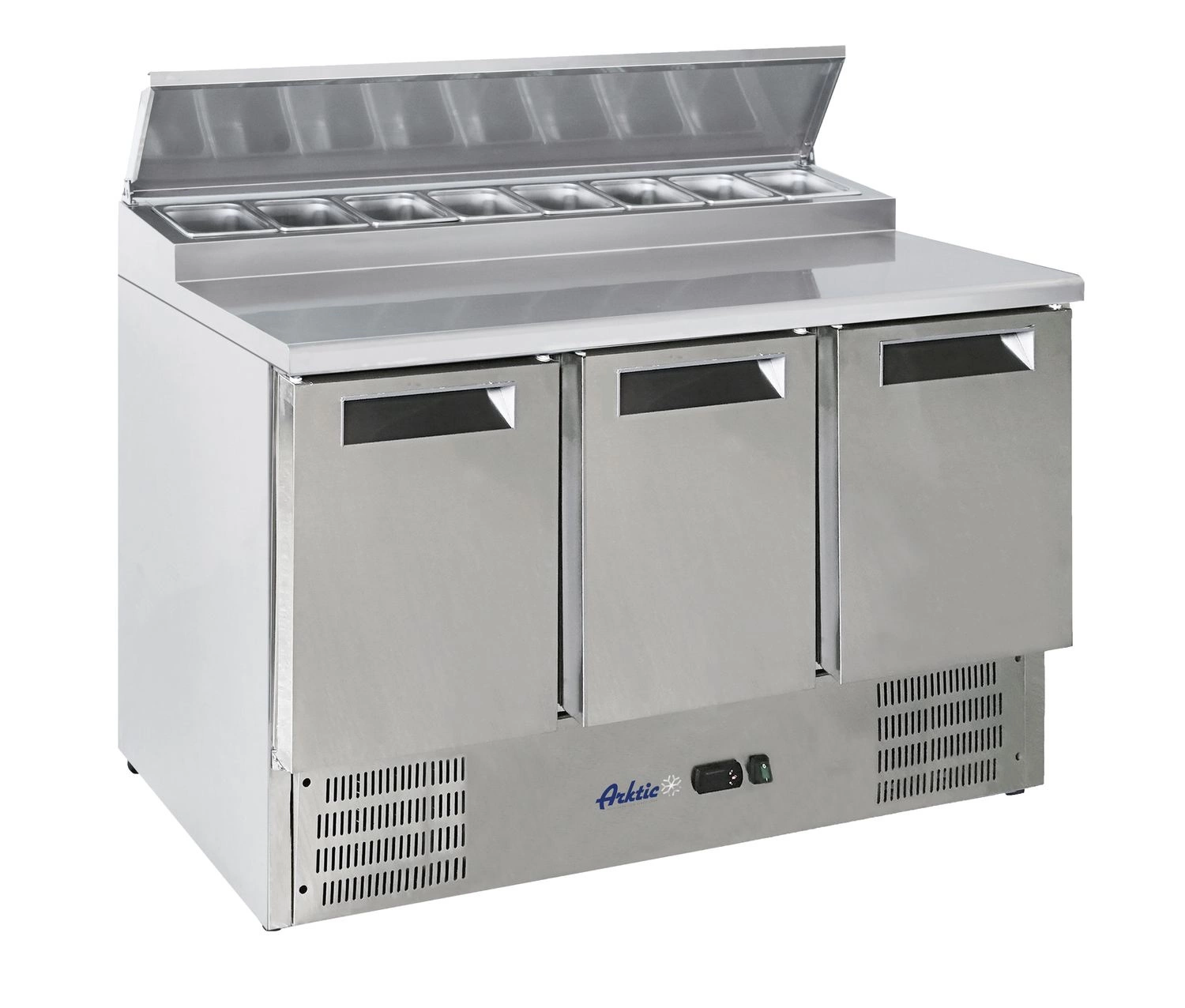 Stół chłodniczy 3-drzwiowy sałatkowy z nadstawą HENDI to niezawodne rozwiązanie dla każdej profesjonalnej kuchni. Zapewnia dużą pojemność, precyzyjną kontrolę temperatury oraz solidność wykonania. Dzięki nowoczesnym technologiom i praktycznym rozwiązaniom ułatwia codzienną pracę zespołu kuchennego, gwarantując długotrwałą świeżość przechowywanych produktów. To inwestycja w bezpieczeństwo i wydajność pracy w gastronomii.