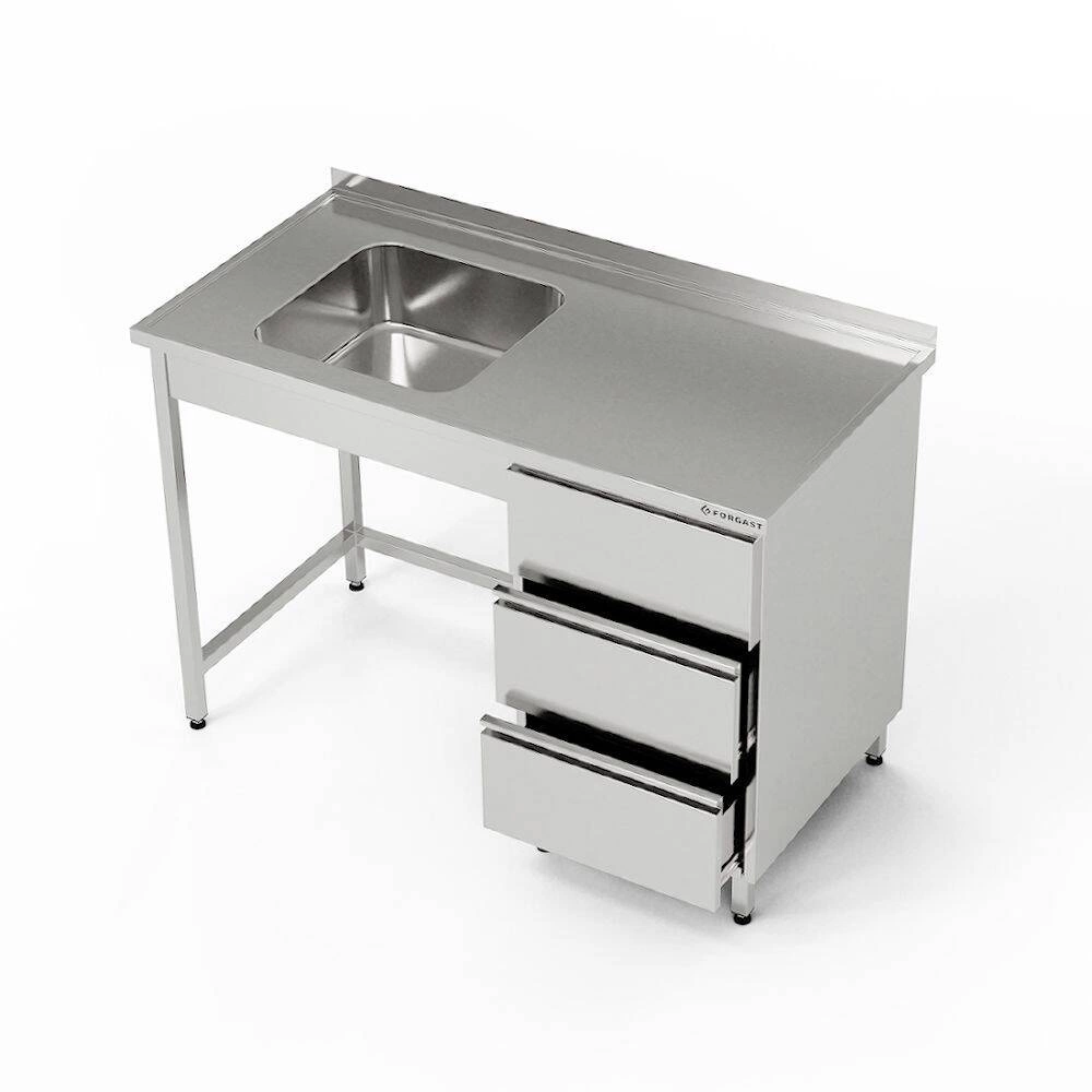 Stół nierdzewny ze zlewem 1-komorowym i blokiem 3-ch szuflad 120x60x85 cm FORGAST