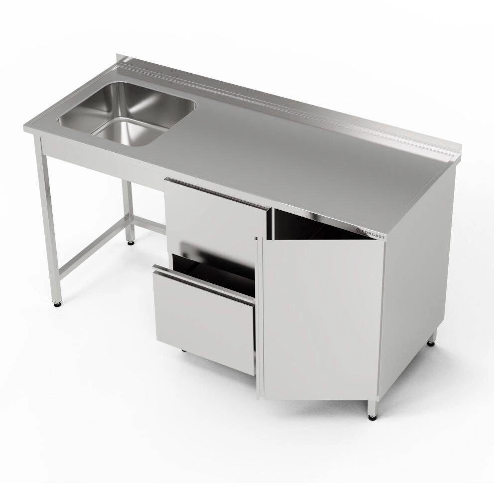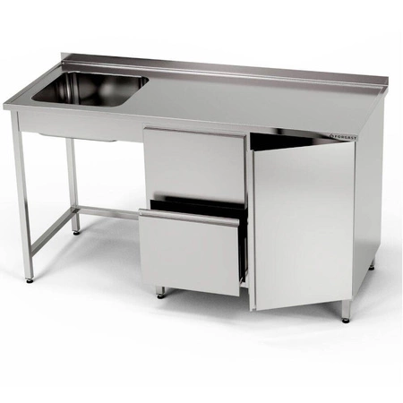 Stół nierdzewny ze zlewem 1-komorowym, szafką i blokiem szuflad 190x70x85 cm FORGAST