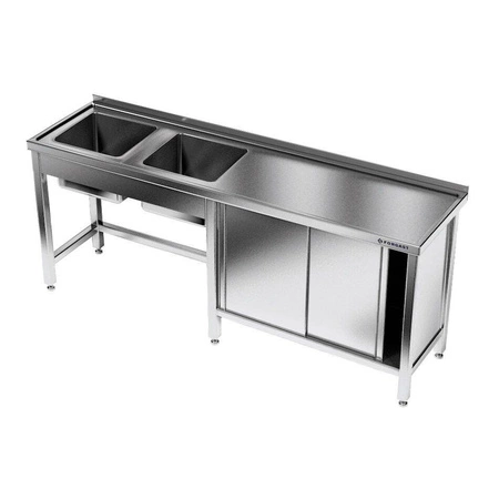 Stół nierdzewny ze zlewem 2-komorowym 240x70x85 cm FORGAST