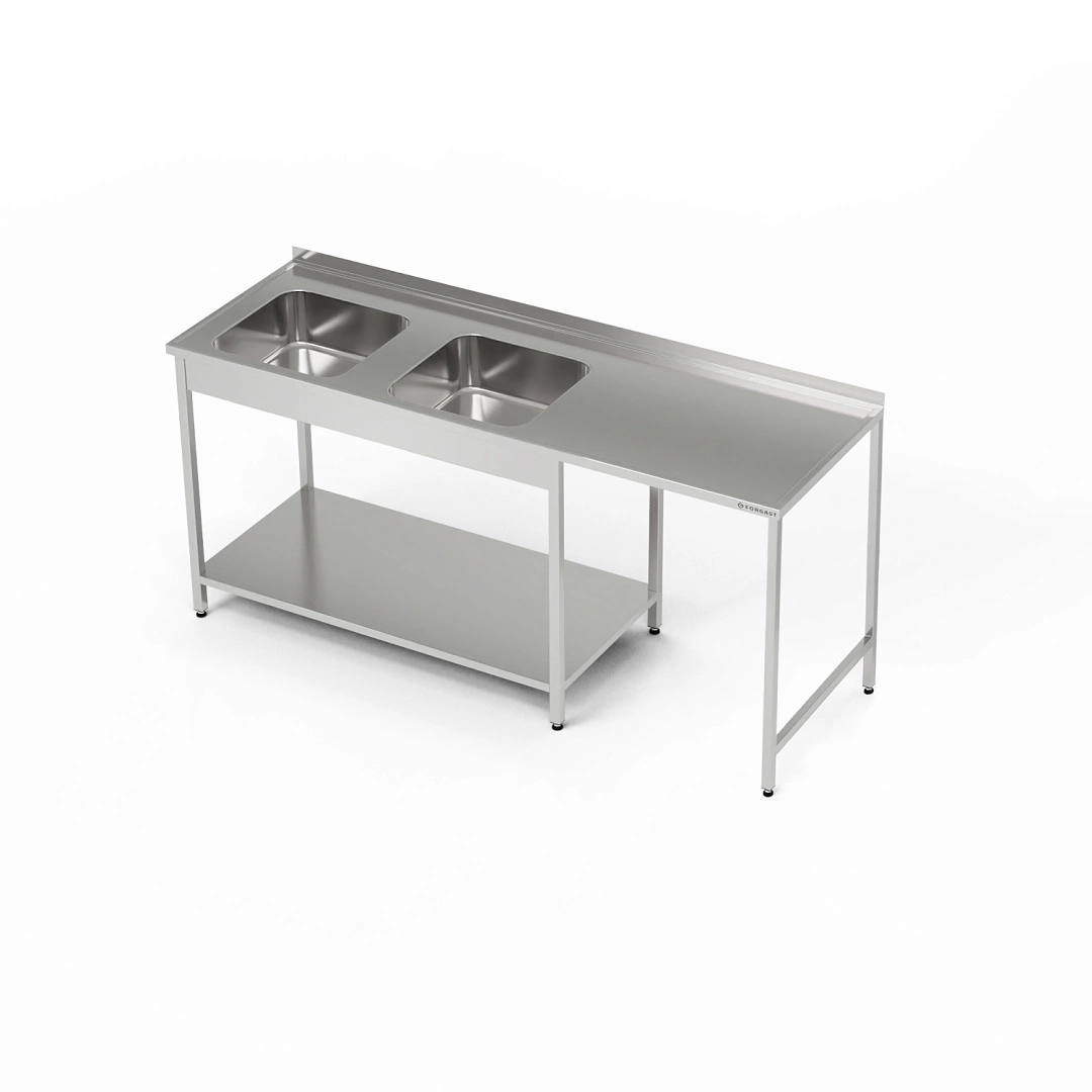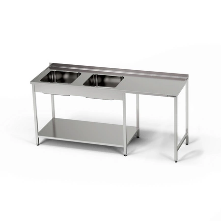 Stół nierdzewny ze zlewem 2-komorowym i miejscem na zmywarkę 230x60x85 cm FORGAST