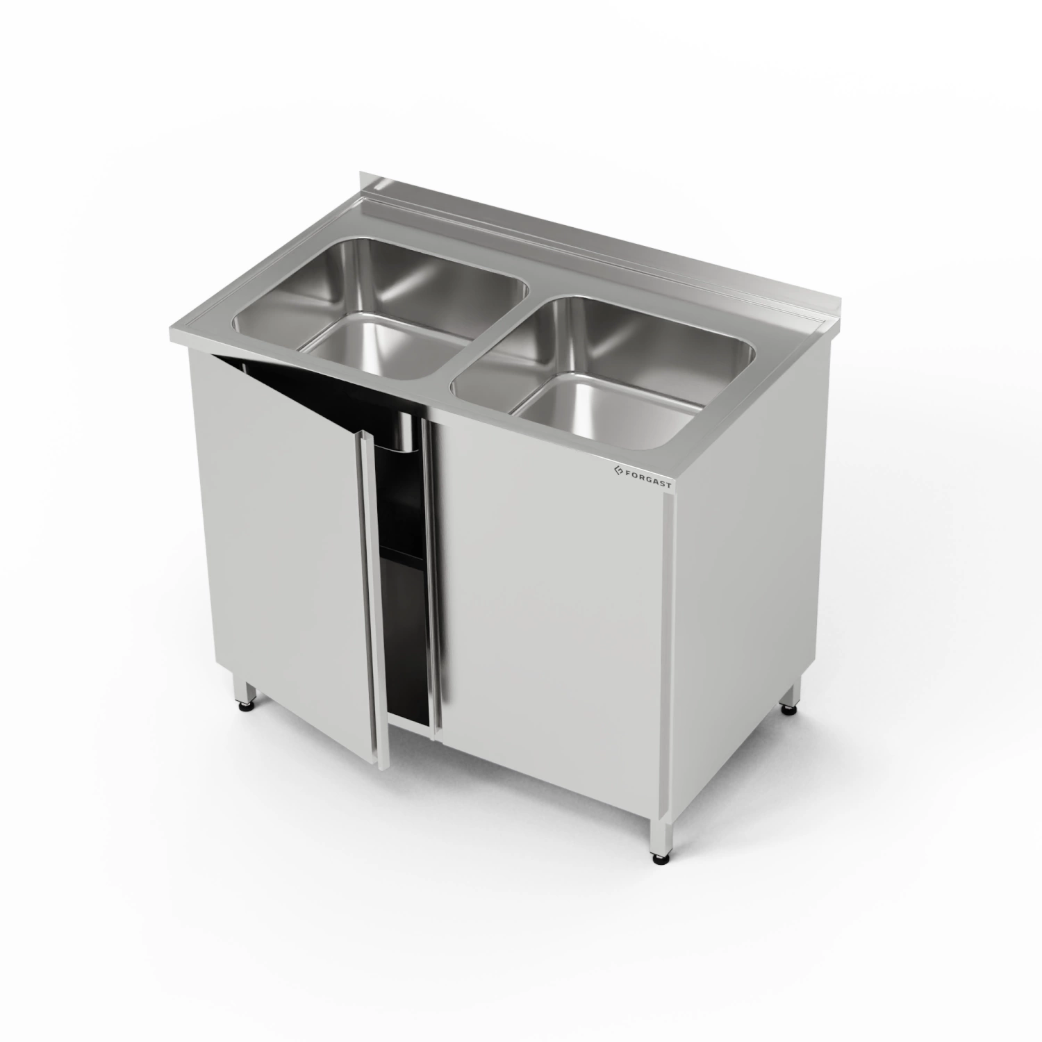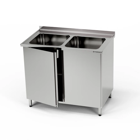 Stół nierdzewny ze zlewem 2-komorowym i szafką 140x60x85 cm FORGAST