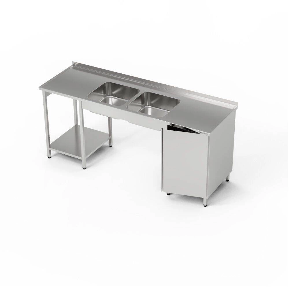 Stół nierdzewny ze zlewem 2-komorowym i szafką 260x70x85 cm FORGAST