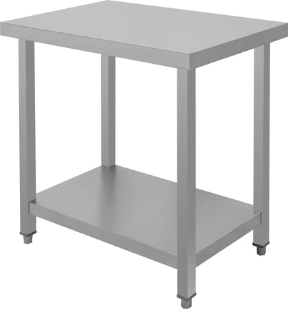 Opis Stół roboczy centralny skręcany z półką YATO YG-08990 o wymiarach 80x50x85 cm to praktyczne i trwałe rozwiązanie do profesjonalnych kuchni gastronomicznych. Wykonany z polerowanej stali nierdzewnej SS201, jest odporny na działanie kwasów organicznych i detergentów, co ułatwia codzienne utrzymanie czystości. Solidna konstrukcja z blachy o grubości 0,8 mm, wzmocniona od spodu laminowaną płytą drewnianą o grubości 20 mm, gwarantuje nośność blatu do 150 kg oraz skuteczne tłumienie dźwięków.