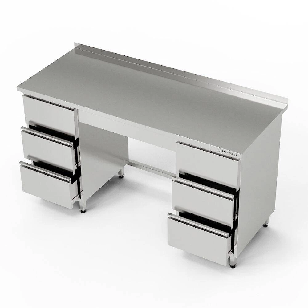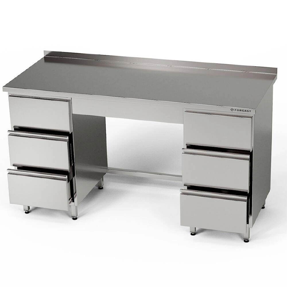 Stół roboczy o wymiarach 240x70x85 cm z 2 blokami 3 szuflad. Wykonany ze stali nierdzewnej J4.