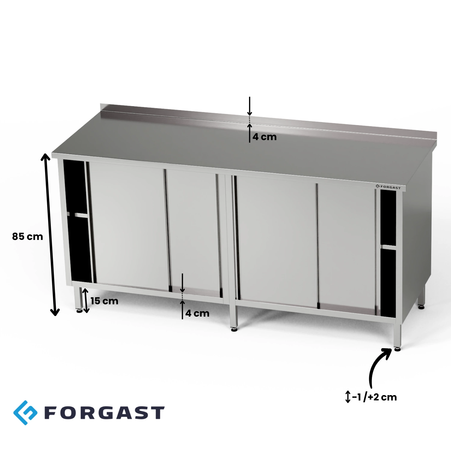 Stół roboczy nierdzewny z 2 szafkami 230x60x85 cm | FORGAST