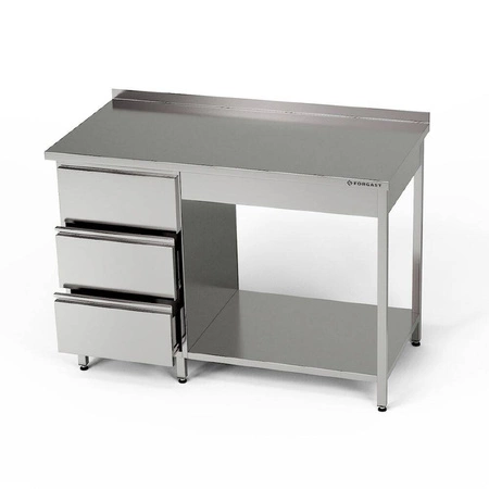 Stół roboczy nierdzewny z blokiem szuflad i półką 190x60x85 cm | FORGAST