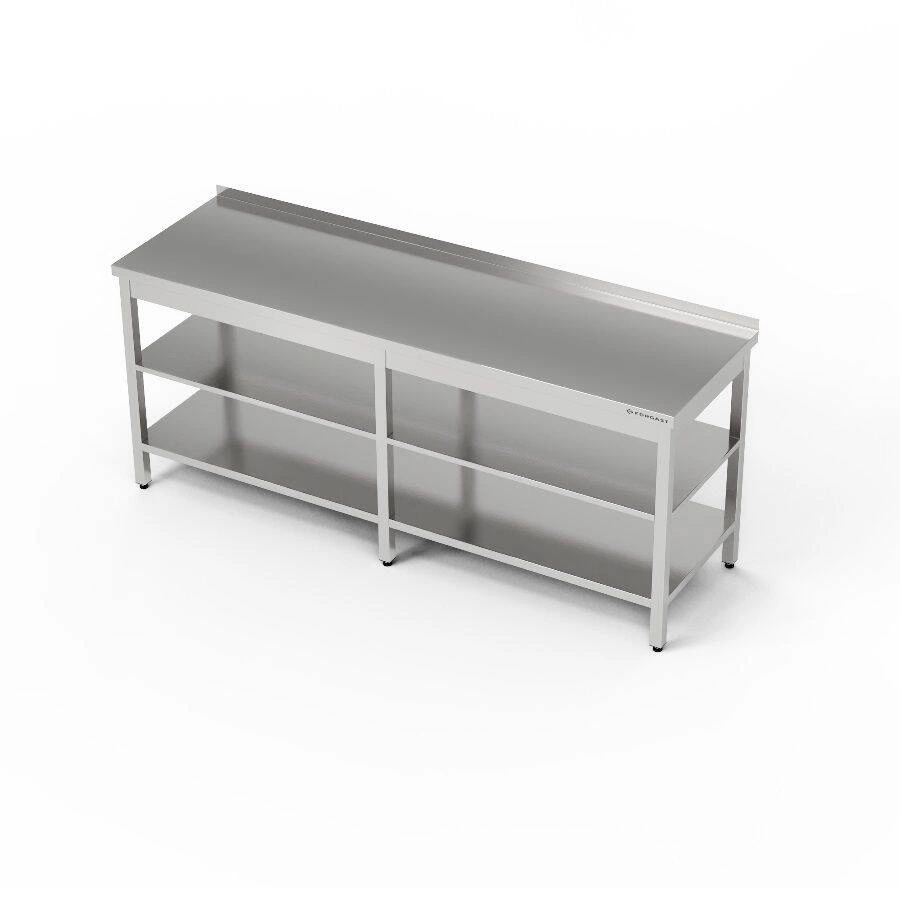 Stół roboczy z dwiema półkami o wymiarach 230x60x85 cm wykonany ze stali nierdzewnej J4.