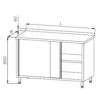 Stół roboczy to podstawowe wyposażenie profesjonalnej gastronomii. Wykonany z blachy nierdzewnej o grubości 0,8-1 mm. Blat stołu wygłuszono płytą wiórową klejoną od spodu do blachy klejami spełniającymi wszystkie wymogi dotyczące kontaktu z żywnością. Zabezpieczenie płyty środkami wodoodpornymi sprawia, że stół jest odporny na działanie wilgoci. Stelaż stołu opiera się na kształtownikach o profilu zamkniętym.